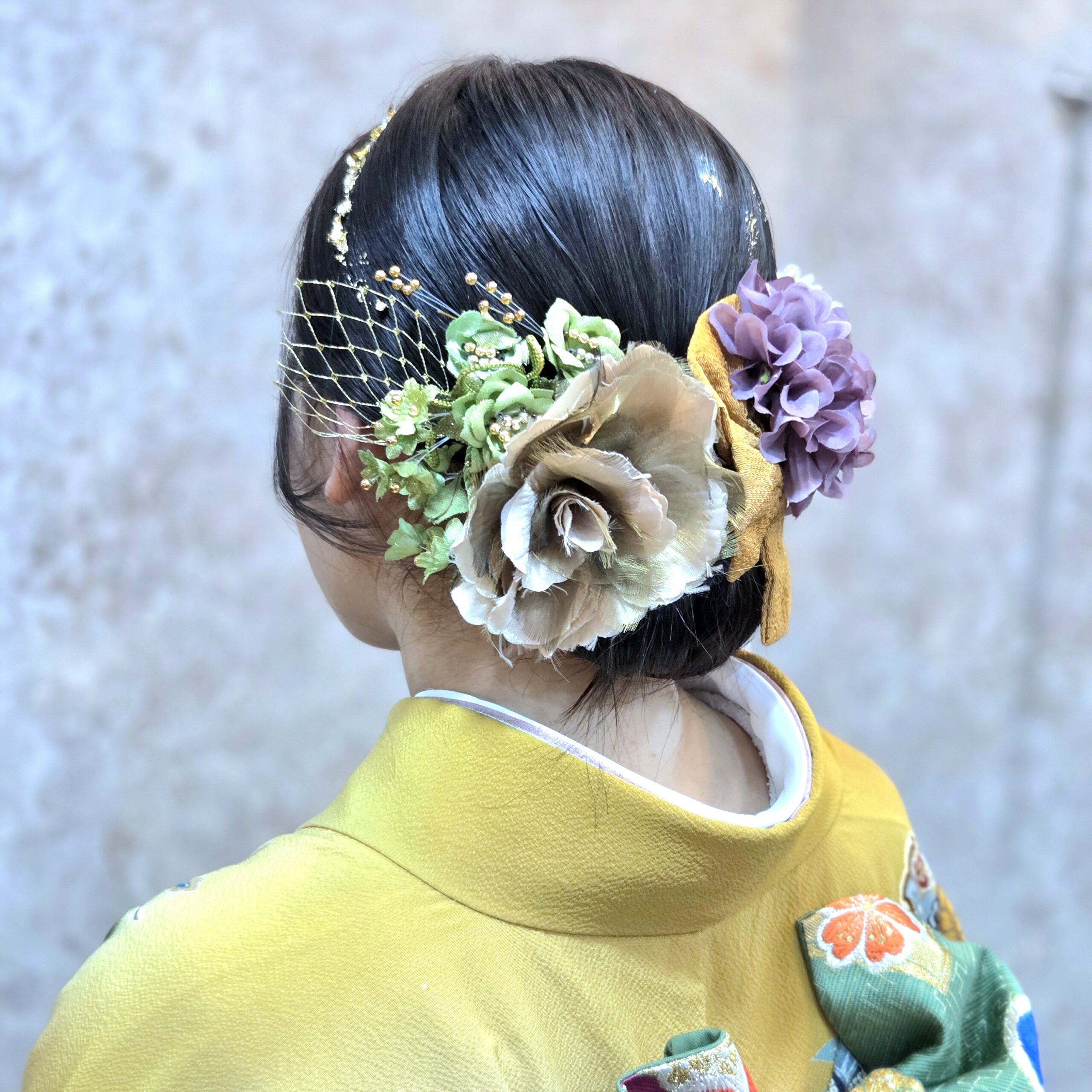 あえて王道の和髪ではなく、モダンにまとめたスタイルをチョイス。